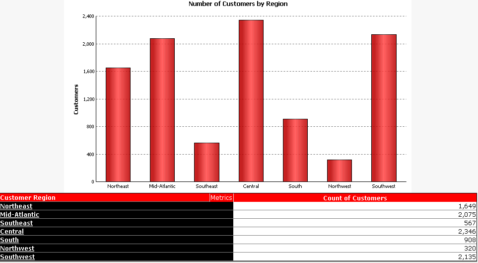 The image below shows a report that allows you to drill on any of the Customer Regions: